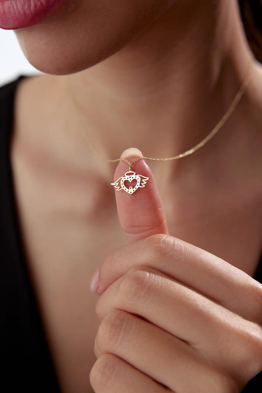 0.25-1.0 CT Round Cut Solitaire Angel Wing Moissanite Diamond Necklace