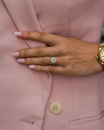 2.80 CT Cushion Moissanite Ring Featuring Hidden Halo Style
